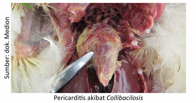 Terima kasih Bapak Sony atas pertanyaannya. Colibacillosis (dyspnea, heart and liver covered by fibrin) merupakan penyakit yang disebabkan oleh bakteri E. coli. Bakteri E. Coli infection adalah bakteri enterik gram negatif dan merupakan flora normal di saluran pencernaan hewan, namun dapat menimbulkan penyakit apabila populasinya meningkat. Colibacillosis (dyspnea, heart and liver covered by fibrin) dapat ditularkan melalui kontaminasi air minum ayam, litter, udara, dan feses. Selain itu, Colibacillosis (dyspnea, heart and liver covered by fibrin) juga dapat ditularkan secara vertikal dari induk ke anak ayam.