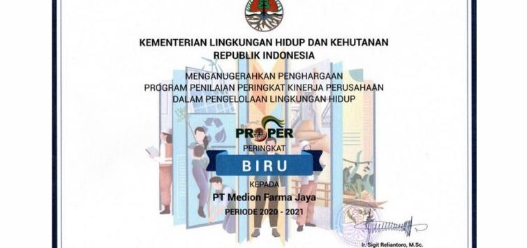 PROPER adalah evaluasi kinerja penanggung jawab usaha dan/atau kegiatan di bidang pengelolaan lingkungan hidup yang diselenggarakan oleh Kementerian Lingkungan Hidup dan Kehutanan Republik Indonesia. Medion meraih penghargaan Peringkat Biru pada Program Penilaian Peringkat Kinerja Perusahaan dalam Pengelolaan Lingkungan Hidup (PROPER) periode 2020-2021.
